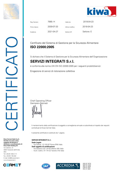 La ISO 22000 “Food safety management systems-requirements” è uno standard volontario per la certificazione di sistemi di gestione della sicurezza in campo alimentare.