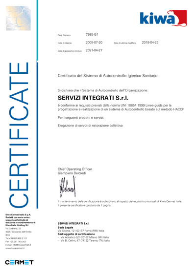 La norma UNI 10854:1999 “Sistemi di Gestione per l’Autocontrollo basato sui principi dell’HACCP” (Hazard Analysis and Critical Control Point), rappresenta la metodologia più diffusa per la valutazione dei rischi e dei pericoli connessi alla sicurezza igienica di processi e prodotti, stabilendo opportune e appropriate misure di controllo.